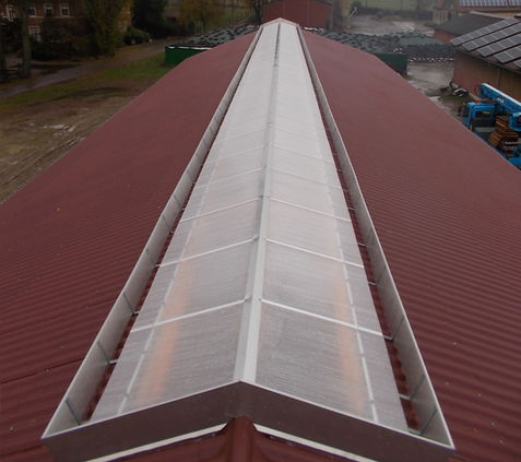 Die Möglichkeit der natürlichen Beleuchtung und Belüftung entlang des Firstes sorgt für ein optimales Stallklima und schafft die besten Lebensbedingungen für die Tiere.
